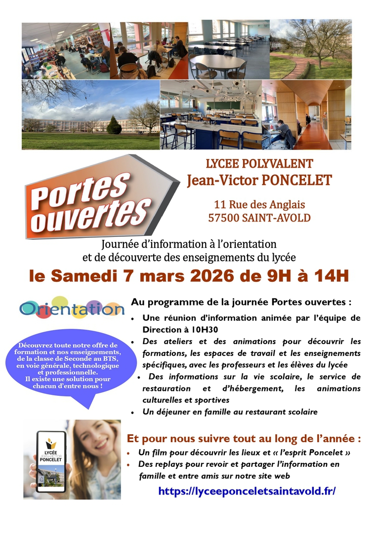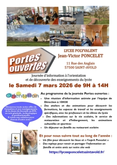 Retrouvez la FCPE de St-Avold lors des portes ouvertes du Lycée J-V PONCELET: